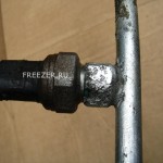 - Слева — датчик. Справа — посадочное место на трубке, куда он вкручивается. А через прогнившую дыру открывается вид на зеленое уплотнительное кольцо.